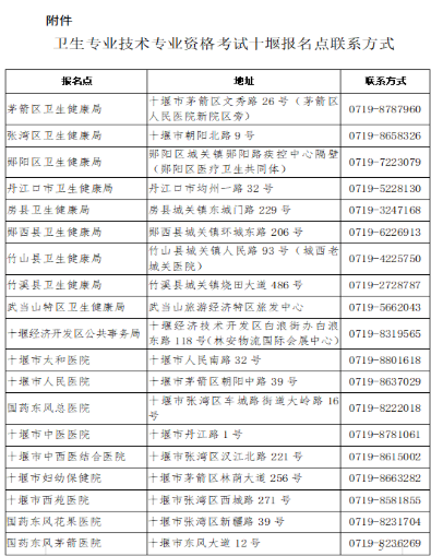 附件:衛生專業技術專業資格考試十堰各報名點聯系方式